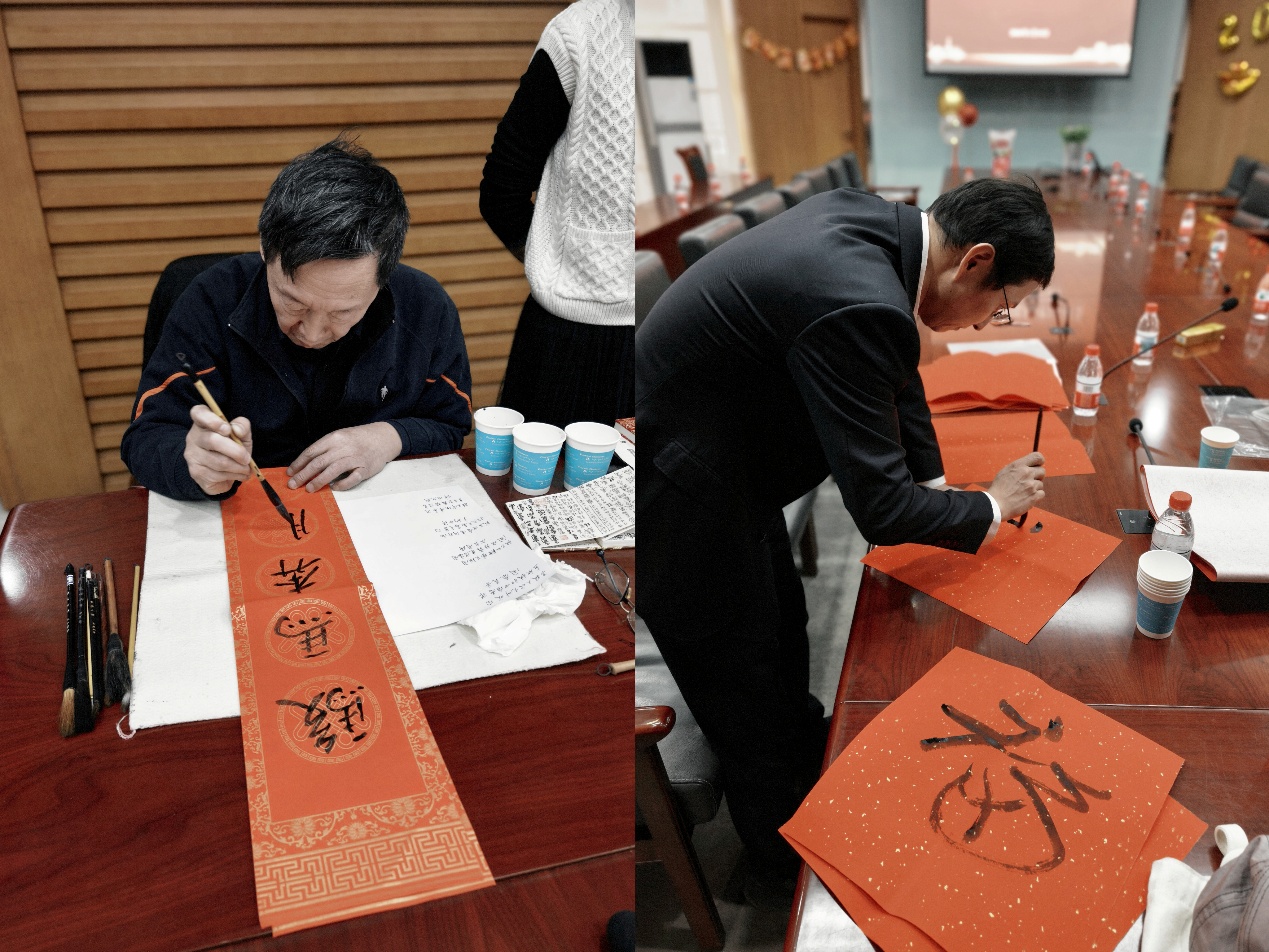 撰写福字春联区域更是人气高涨,教育学院原学术委员会主任、第一届分工会主席、退休教师程方平教授挥毫泼墨、笔走龙蛇,一幅幅笔力遒劲、寓意吉祥的福字和春联跃然纸上。“立德树人担使命,培根铸魂育新人” “新春启泰迎好运,桃李芬芳绽马年”等饱含教育情怀的春联,不仅传递着新春的祝福,更彰显了教育工作者的初心使命。会员们纷纷上前求取福字春联,接过的不仅是满满的新春祝福,更是老教师对教育事业的殷切期许,传承着尊师重教、薪火相传的优良传统。
