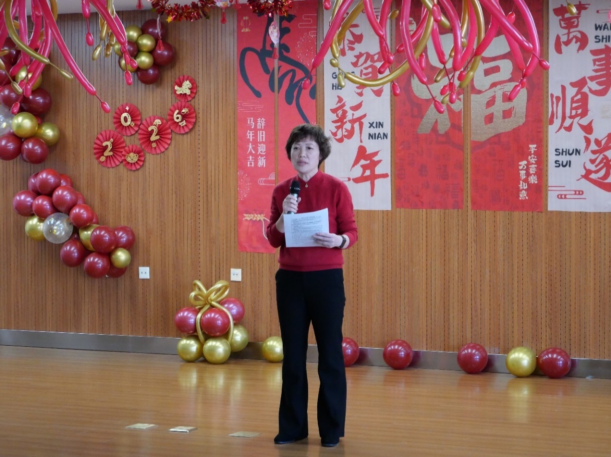 联欢会伊始,汤欣院长代表医院作年度工作总结。她全面梳理了校医院在校园医疗保障、健康科普宣传、突发公共卫生事件处置等方面的工作成效,肯定了全院职工“坚守仁心护师生”的初心和在平凡岗位上的辛勤付出,并对2026年医院的发展规划作出展望,鼓励大家以更饱满的热情投身校园医疗服务事业。