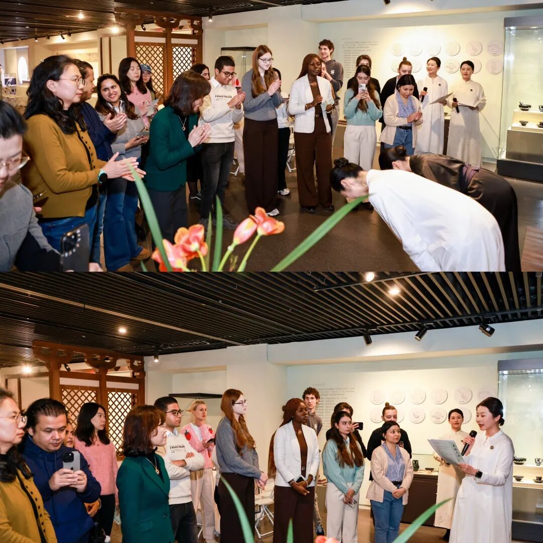 活动伊始,复原宋人风雅的“四艺”演示,营造出宁静深远的文化氛围。博物馆同仁精心组织了建盏鉴赏、茶叶品鉴及茶艺实操等活动环节。参与者亲手执壶、注水、奉茶,在互动体验中深度感知中国茶道的技艺与美学。围绕“茶和天下”的主题,中外师生畅谈各自国家的茶饮风俗,不同文化在坦诚对话中相互映照。